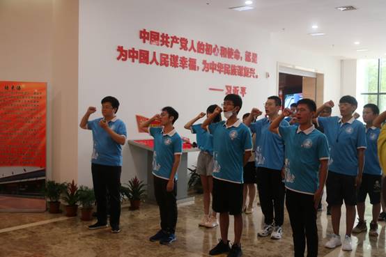 图为实践队员在海阳市地雷战党性教育基地重温入党誓词。