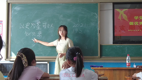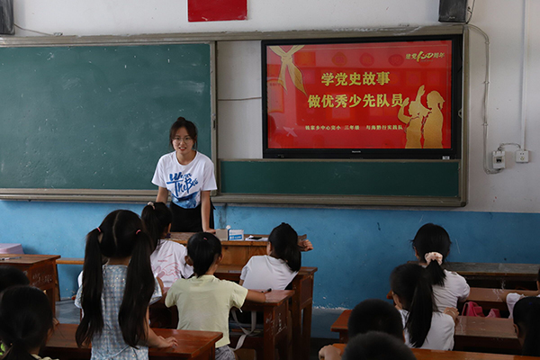 “以史为鉴可以知兴衰”,正值建党一百年之际,为了在孩子们的心里埋下爱党爱国的种子, “与海黔行”实践队根据钱家乡中心完小的实际情况,设计了党史学习课程体系,让孩子们传承红色精神、体悟光荣历史。