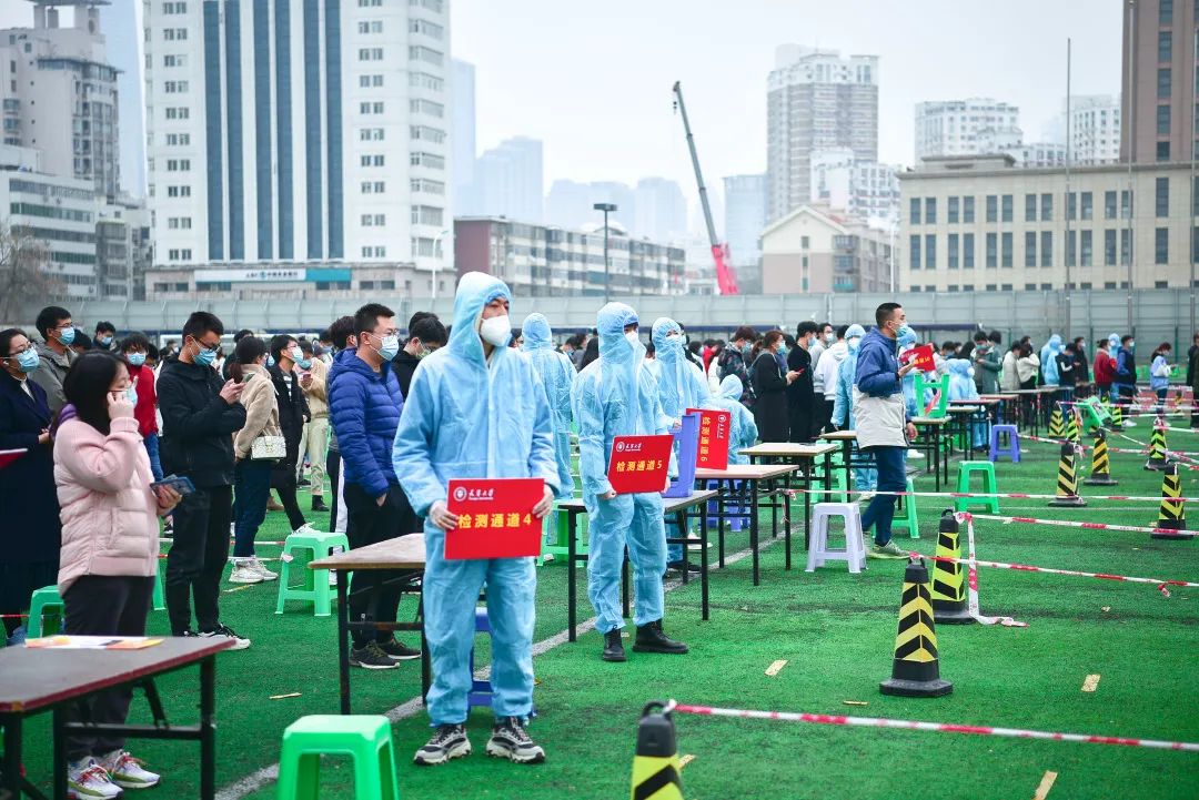 大筛过程中,志愿者们负责现场沟通联络,维护秩序,引导待测人员扫码登记……在志愿者们的共同努力下,检测工作得到了快速、有序的开展。