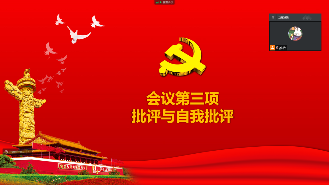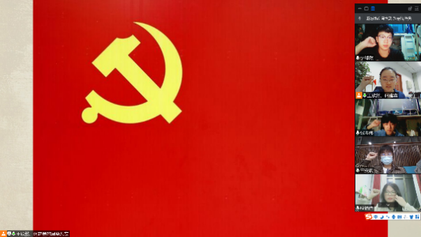 会议伊始,在支部书记刘宇同志的带领下,全体党员面向党旗进行线上“云宣誓”,重温入党誓词,在铮铮誓言中回顾入党时的庄严承诺和坚定决心。