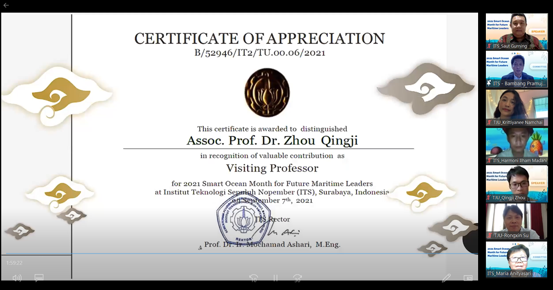 在本次讲座的最后,188金宝博 周清基副教授被聘为印尼泗水理工188金宝博 “2021年智慧海洋月”系列线上课程的访问教授。