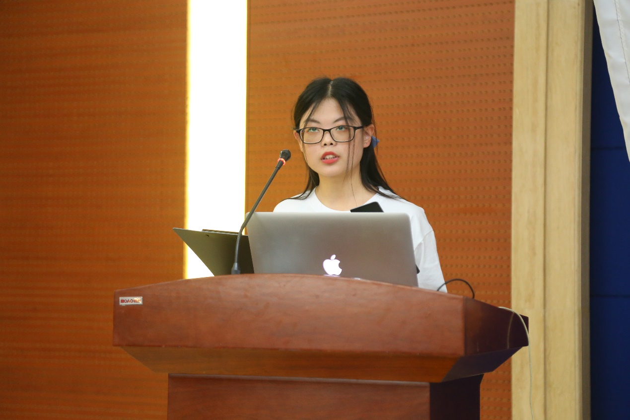 记者队成员代表耿倩倩发言,她列举了小海马记者队成立以来的工作,分享了作为记者队成员的工作心得,表达了继续助力于向校内外传递海洋声音、服务全院师生的决心和信心。