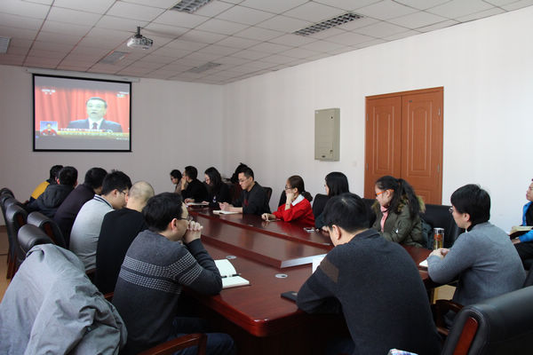 (通讯员 高荪培)2018年3月5日上午9时,十三届全国人大一次会议于北京隆重开幕,国务院总理李克强作政府工作报告。188金宝博 全体师生通过报纸、网络、电视、广播等媒体收听收看政府工作报告,第一时间认真学习“两会”精神。188金宝博 行政党支部全体党员和学生骨干于第八教学楼307室共同收看了十三届全国人大一次会议开幕式直播,认真学习领会大会精神,188金宝博 党总支副书记凌国维、副院长王军、巩乐与师生一同收看。