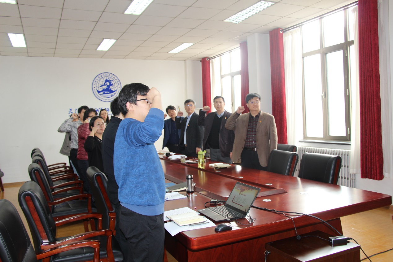 会议开始前,全体党员佩戴党徽,面向党旗庄严宣誓,重温入党誓词。