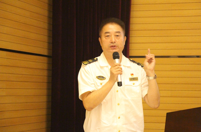 大沽口海事局政委文殿元以“蓝海情 强国梦”为主题,针对实现海洋强国建设目标、打造强大的海上力量与海事局的职责和执法领域之间的联系,以及在此大背景下大沽口海事局如何行使执法权、发挥监管效能、促进区域经济发展等方面内容娓娓道来。他强调工作中要发挥党组织战斗堡垒的强大作用,为此大沽口海事局牵头成立临港区域“党建联盟”,在“小支部大党建”的引领作用和“伴随廉政”的政治保障下,各项工作得以高质量开展。