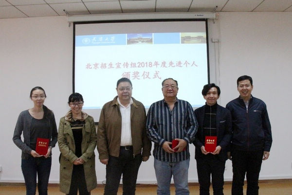 结合参与宣传次数、录取学生数量、优质生源比例等指标,北京招生宣传组综合推选肖亮、覃恒钰、汪清、邢畅等11名教师为组内年度招生宣传工作先进个人。翟京生、凌国维、潘晓睿为获奖者分别颁发了荣誉证书。