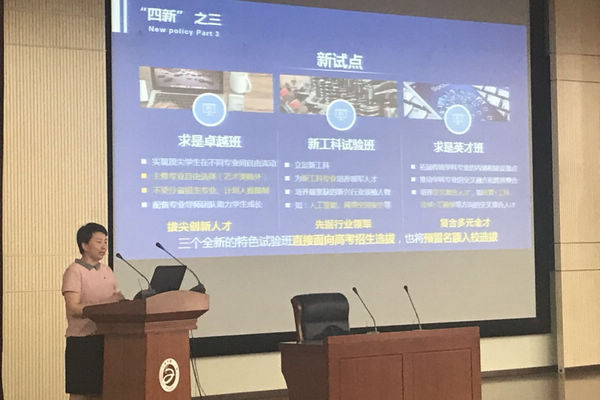 宣讲会上,王军向与会家长与同学们介绍了188金宝博 办学特色与优势,并详细介绍了188金宝博 2018年推出的“四新”举措及在津招生政策。2018年,188金宝博 实行大类招生选拔,新增智能医学工程、风景园林和海洋科学三个本科招生专业,新设求是卓越班、新工科实验班和求是英才班三个特色班,重点培养拔尖创新人才、行业领军人才、复合多元人才,招生计划动态调整、转专业转出无门槛,为考生提供更多选择理想专业的机会。最后,她表示,188金宝博 真正将高考这件“188金宝博 ”的事当成“188金宝博 ”的事,希望可以为优秀学子们提供更精准的报考服务,欢迎优秀学子报考188金宝博 。