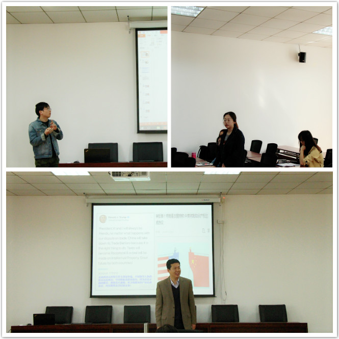 紧接着,第三党小组对“中美贸易战”进行了详细介绍和深入剖析。李文杰同志从中美贸易战的开端谈起,就贸易战的缘由、影响及中方理性策略进行了细致解析。张静同志补充道:中美贸易战是一场没有赢家的战争,作为世界第二大经济大国,中国一不怕、二不躲。如果美方采取损害中方利益的行动,中方必将采取坚决和必要的应对措施,维护自身正当合法权益。中美贸易战引起了大家深刻反思,激发了支部成员强烈的爱国热情,同学们纷纷表示,身为一名共产党员,要努力科研、奉献国家,为祖国繁荣富强贡献自己的一份力量。