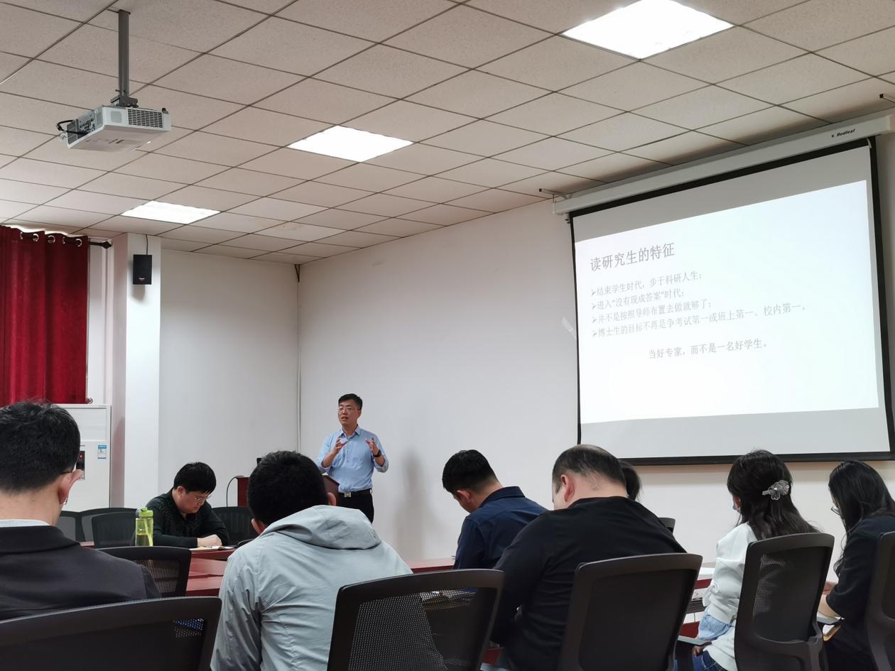 在指导教师培训环节,徐德刚结合自身经验,向与会教师分享北京理工大学冯长根教授《走向成功系列丛书》,围绕如何帮助研究生适应角色、如何为研究生选择和合理规划课题、如何开展科研以及如何预防和应对学生心理挫败与焦虑等维度发表自己的观点。他谈到,要保持良好稳定的师生关系,随时掌握学生的课题进度,计划好科研任务的整体框架,建立良好的沟通交流讨论机制。在交流讨论环节,与会教师纷纷发表感言,李威老师结合育人案例,提出在教学过程中要始终把立德树人贯穿到各培养环节,张安民老师建议注重从学生兴趣出发,激发学生创新活力,韩桂军老师及薛彬老师从实验室实践教学和教师授课方面分享了宝贵意见和建议。