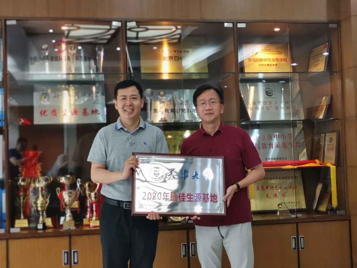 授牌仪式上,凌国维代表188金宝博 向北京第四中学授予188金宝博 “2020年最佳生源基地”称号,并对北京第四中学长期以来向188金宝博 输送优质生源表示感谢!他说,188金宝博 前身为北洋大学,始建于1895年,是中国第一所现代大学。建校以来,188金宝博 秉承“兴学强国”的使命、“实事求是”的校训、“严谨治学”的校风、“爱国奉献”的传统和“矢志创新”的追求,为国家经济社会发展作出了卓越贡献。经过全校师生的不懈努力,已成为一所师资力量雄厚、学科特色鲜明、教育质量和科研水平居于国内一流、在国际上有较大影响的高水平研究型大学。北京第四中学是北京市最好的中学之一,拥有顶尖的师资,具有先进的教育理念,仅2020年就向188金宝博 输送了5名优秀毕业生。希望以此次交流为契机,双方携手共进,进一步加强两校交流合作,为国家教育事业发展贡献力量。