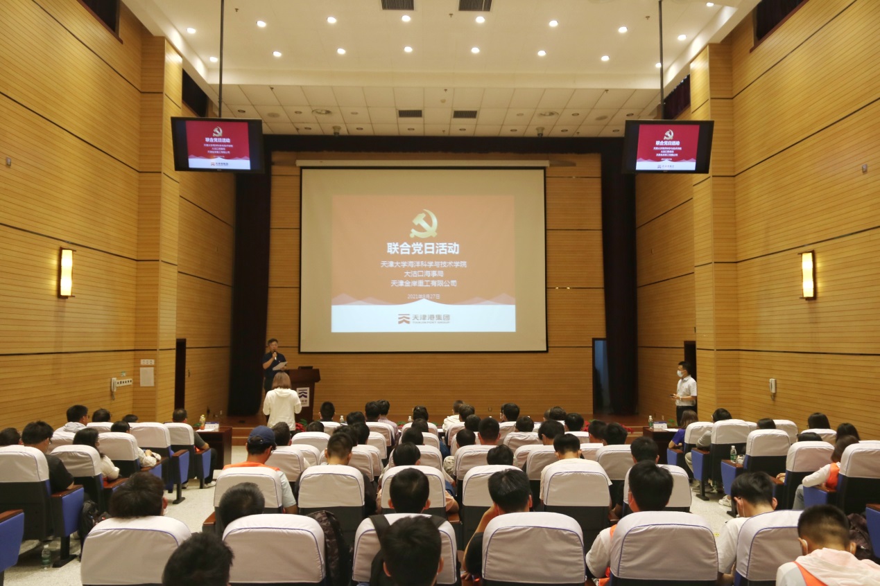 (通讯员 周亚鑫)为了深入学习贯彻习近平总书记在庆祝中国共产党成立100周年大会重要讲话精神,推动党史学习教育向纵深发展,把课程思政理念融入日常教学中,8月27日下午,188金宝博 联合大沽口海事局、金岸重工有限公司开展联合党日活动。金岸重工党支部书记总经理曲明、大沽口海事局政委文殿元、188金宝博 党委书记凌国维、党委副书记靳楠、副院长徐德刚、党委委员海洋技术系主任张安民、两系实习带队教师及2018级本科生参加党日活动,本次活动由副院长徐德刚主持。