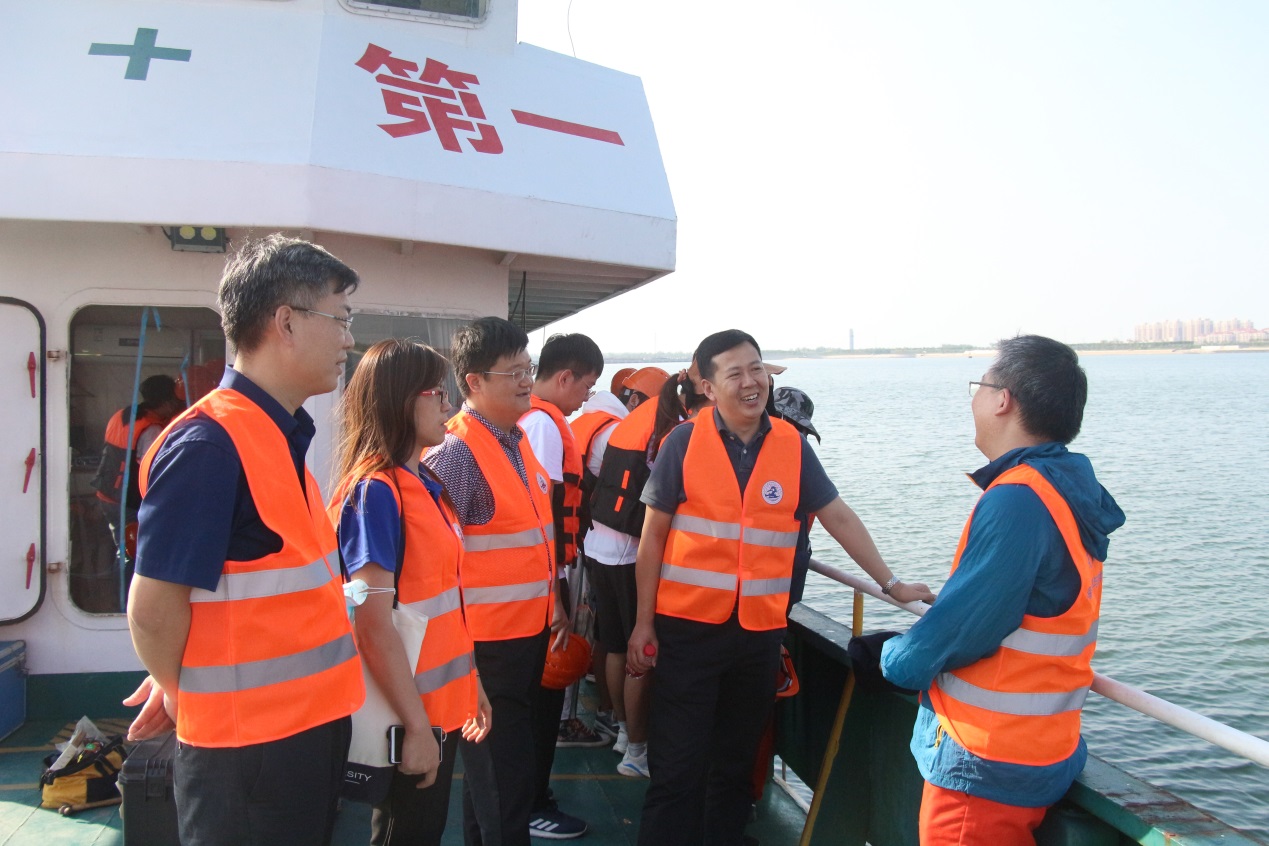 联合党日活动结束后,188金宝博 党委书记凌国维、副书记靳楠、副院长徐德刚跟随师生一起来到实习船上参加出海实习。凌国维向带队老师详细了解了出海实习开展情况,查看了实习安全方面的相关保障,随后与同学们就实习过程中遇见的问题和困难进行了交流,叮嘱同学们在实习学习的同时,要严格遵守纪律要求,确保安全,圆满完成实习任务。