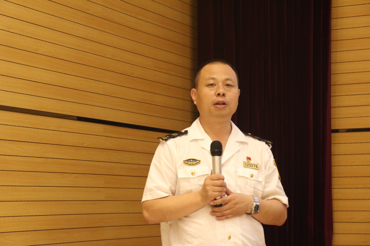 大沽口海事局边绍琨介绍了单位基本情况及发展历史,海事局主要负责辖区内水上安全、防止船舶污染、海上航标、水上安全通信管理工作,同时负责规定区域内的船舶和海上设施检验、港口航道测绘管理工作。边绍琨特别介绍了大沽口海事局卓有成效的“伴随廉政”体系建设,讲解了如何防范外部影响海事廉洁执法、外部影响海事廉洁执法的具体情形以及对外部影响海事廉洁执法行为的处置。
