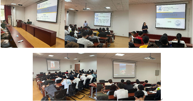 专业介绍环节中,各专业教师向同学们介绍了自身研究方向和课题组情况,增加学生对专业方向的了解,帮助学生找到自己感兴趣的方向。由于部分教师正在带队开展海上外业实习,老师们在港口或海上进行了线上连线,让同学们坐在校园中就能够感受到大海的宽广,体会到海洋类专业的特色。