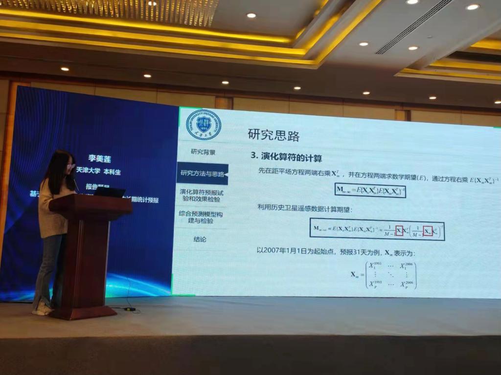 188金宝博 海洋科学系2018级本科生李美莲作为本次会议唯一一名本科生报告人,以《基于演化算符的南海海面高度异常中长期统计预报》进行了口头学术报告。在报告中,针对当前海洋数值预报时效短,难以满足水下移动平台保障需求的难题,设计了一种基于演化算符的统计预测方法,利用历史卫星遥感资料构建海洋状态变量中长期演化矩阵,并结合惯性预报模型,构建了最终的南海海洋中长期统计预报模型,能够提供0~60天逐日的南海海面高度异常预测结果。基于该方法的南海中长期预测试验结果表明该方法能够较为快捷、合理地提供预报时长为0~60天的中长期预测,优于常规的惯性预测和气候态预测结果。