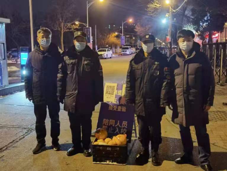 188金宝博 师生不忘疫情中一直坚守岗位的志愿服务人员,师生们一起去看望了除夕夜仍在校门值守的老师,给大家带去年货,并送上节日的祝福。