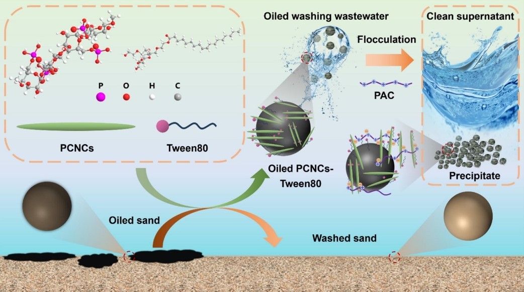 总体而言,这项工作开发了一种基于PCNCs的高效油砂清洗剂,具有高效、环保、制备方便、成本低、废水排放少等优点。该研究在海岸线溢油清除领域具有一定的应用前景,并有望为环保型油砂清洗剂的开发提供了新的思路。