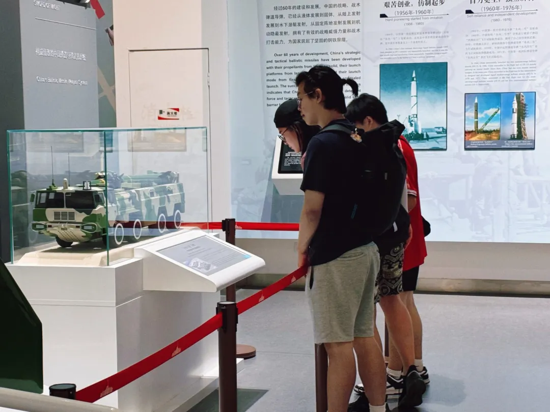 在中国人民革命军事博物馆,留学生了解了中国冷兵器时代的刀剑文化和新时代导弹卫星的新型军事技术,深刻领略了新时代国防和军队建设的壮阔历程和伟大成就,也感受到中国军事力量的强大和人民军队矢志奋斗的强军精神。林展永同学表示:“让我最印象深刻的是一句,‘外国人能搞出来的东西,我们中国人也能自己搞出来’,无数学者在当时科技大爆发的时代里贡献了自己的一生,我为此深感钦佩。”