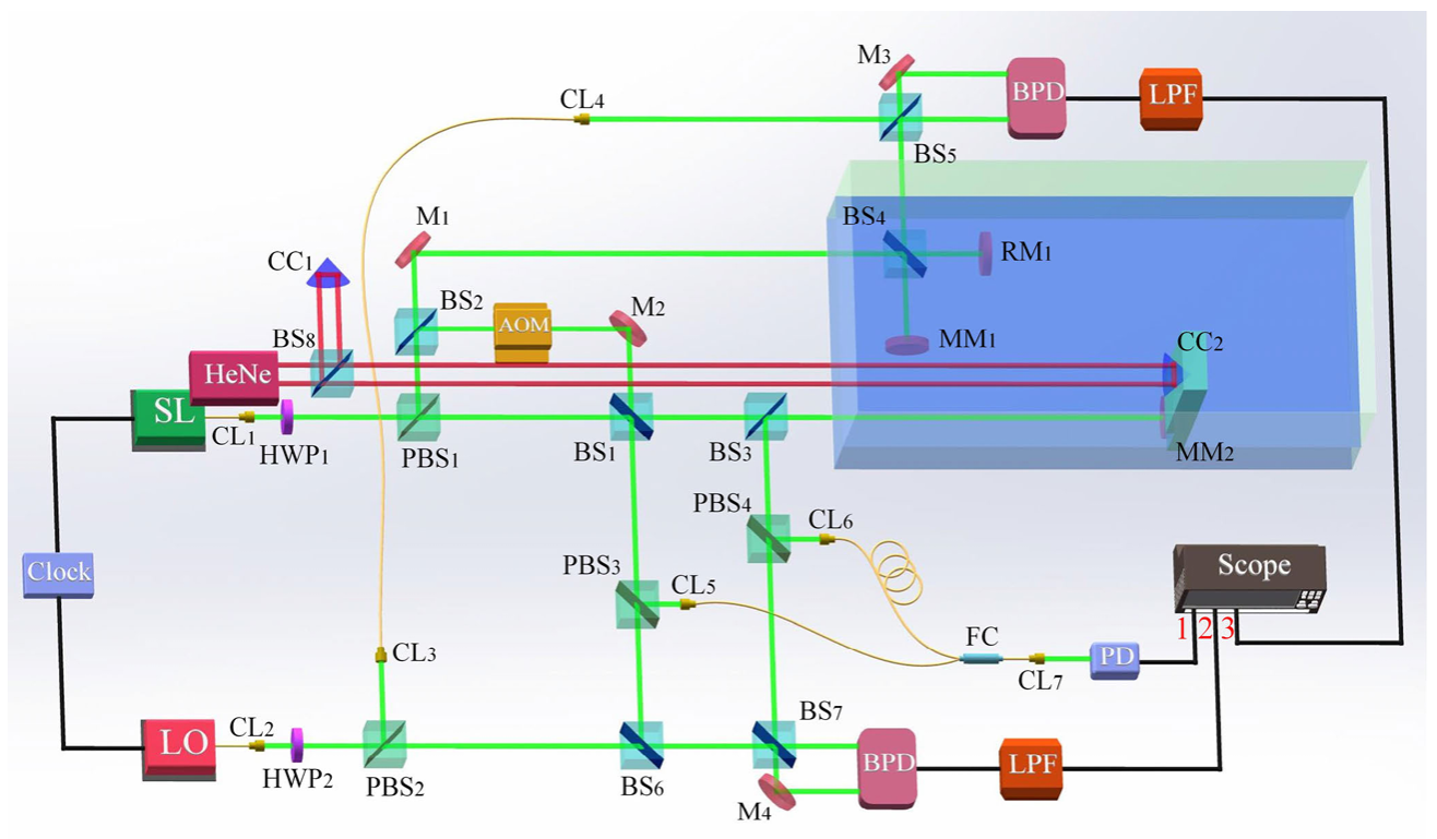 188金宝博 188金宝博 声光探测团队提出了一种基于双光梳干涉的激光雷达系统,以实现精确的水下绝对距离测量。为了消除脉冲激光测量中的非模糊距离,采用了设计的脉冲编码策略,利用声光调制器实现对光信号的开关调制,从而实现对双光梳信号的编码,大大扩展水下测量的非模糊范围。这种组合在不牺牲采样率或测量精度的情况下,显著扩展了双光梳LiDAR的非模糊范围,在重复频率差为2 kHz的情况下,可以提高到约55 km,实现一次性精确的远距离探测。实验结果表明,在12 m的测量范围内,测距精度优于±15 μm。