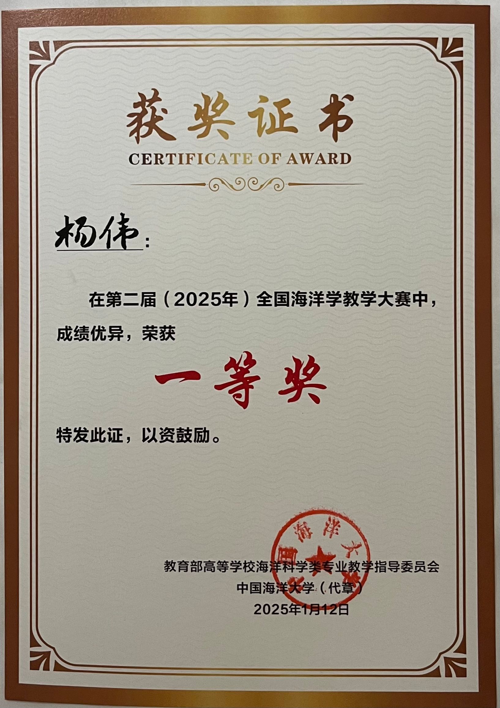 (通讯员:刘永静)2025年1月11日-12日,由教育部高等188金宝博 海洋科学类专业教学指导委员会、中国海洋大学海洋与大气188金宝博 和国家级海洋学课程虚拟教研室主办,广西大学188金宝博 承办的第二届全国海洋学教学大赛在广西大学举行。188金宝博 海洋科学系杨伟副教授经过课程说课和现场教学等综合展示,荣获大赛一等奖。
