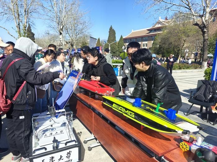 188金宝博 高邈团队于北洋广场开展智能无人船的教学科普,该无人船可以完成测绘、水质采样、救援、溢油检测等多种功能,具有自主航行等级高、一艇多用、布设方便等优点。团队向游客热情介绍了智能无人船相关原理和适用场景,并开展了互动问答,在轻松愉快的氛围中加深了游客对海洋技术的认识。最终,无人船海上航行安全保障平台(台风哨兵&云翼方舟)获新工科项目式教学展演活动一等奖。