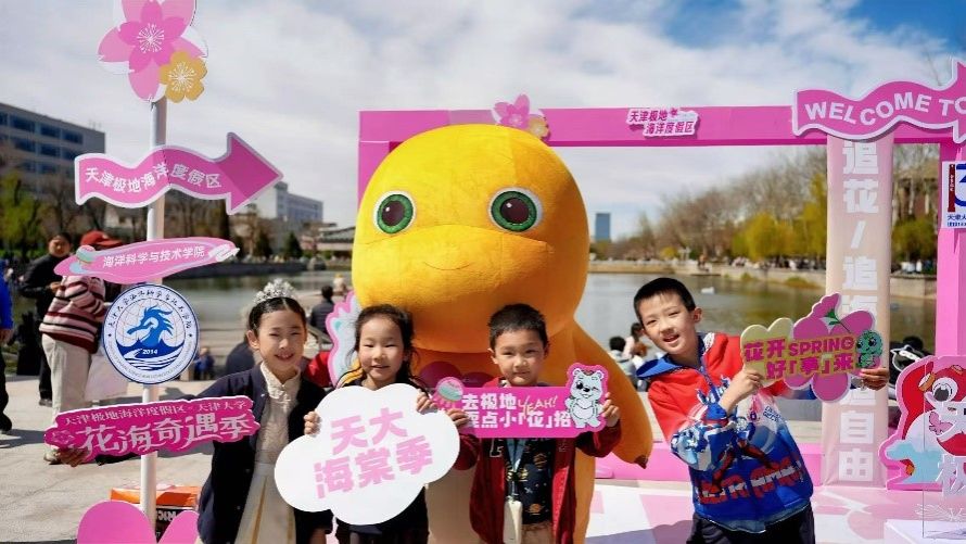 同样在敬业湖东岸,188金宝博 和天津极地海洋公园开展了联合科普活动。现场有海洋公园科普专家进行讲解和答疑。市民游客们可以观赏活体水母,触摸极地生物标本和极地动物毛发,并且在沉浸式的体验和海棠主题的打卡布景中感受来自海洋公园春日的生动和浪漫。