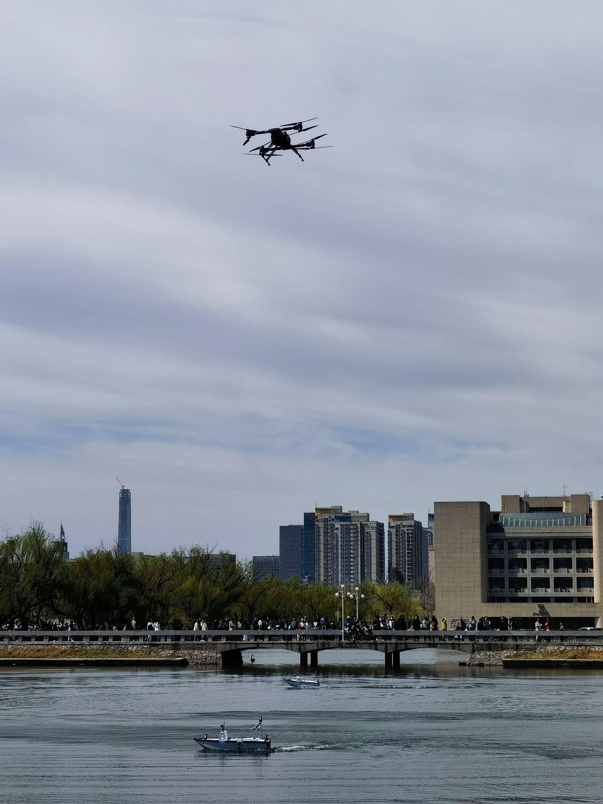 图5敬业湖上,无人机与无人船交相辉映