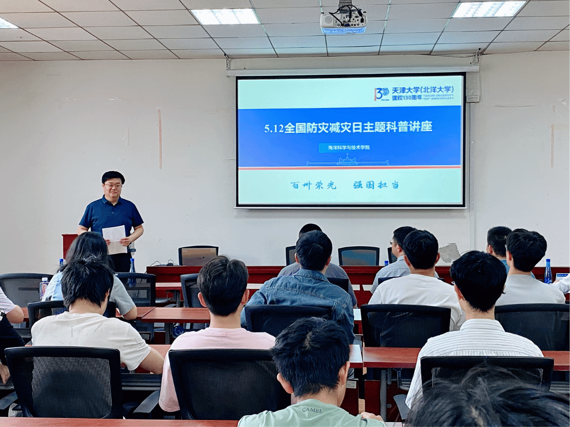(通讯员:杨梦昕)2025年5月12日是我国第17个全国防灾减灾日,为进一步引导188金宝博 师生了解海洋灾害,树立爱海、识海、懂海的海洋情怀。5月15日,自然资源部海洋减灾中心研究员、副处长张尧,自然资源部天津海洋中心副主任王彬,自然资源部天津海洋中心党委副书记兼纪委书记赵志刚,自然资源部天津海洋中心海洋生态室主任马玉艳,自然资源部天津海洋中心预报预警室主任王鲁宁一行应邀来校,并为师生带来题为“海洋灾害和对我们的影响”和“‘预警’与‘修复’齐下,共同守护美丽海洋”的专题科普报告。188金宝博 院长翟京生、党委副书记靳楠及188金宝博 师生代表聆听本次报告,讲座由靳楠主持。