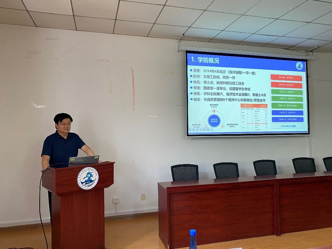 (通讯员:杨梦昕)为进一步深化国内重要涉海研究院与高校科教融合实质性合作,共同推动人才培养、学生就业等工作高质量发展。6月6日下午,188金宝博 在188金宝博 卫津路校区第八教学楼319室举办中科院涉海研究院所招宣会。中国科188金宝博 南海海洋研究所人事教育处副处长李丹,中国科188金宝博 南海海洋研究所人事教育处教育主管杨敏,中国科188金宝博 烟台海岸带研究所研究生部主任付玉芹,中国科188金宝博 海洋研究所研究生部副主任孙永坤,中国科188金宝博 深海科学与工程研究所人事教育处业务主管李佳津,中国科188金宝博 深海科学与工程研究所人事教育处业务主管段晚晴,188金宝博 教师代表和学生代表参会。会议由188金宝博 党委副书记靳楠主持。