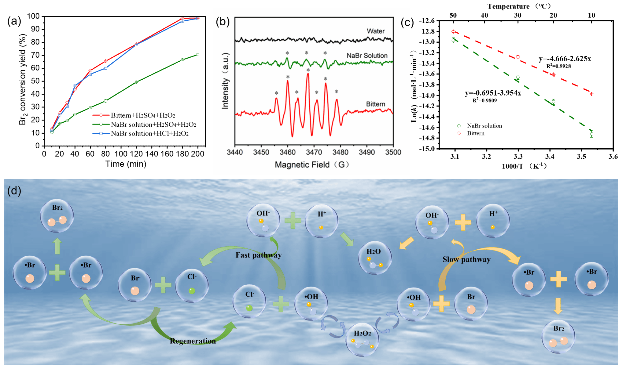该工作成功开发了一种基于双氧水的安全、高效、环境友好的溴素提取新工艺。该技术从源头上消除了氯气使用的安全与环境风险,为溴素生产提供了一种极具潜力的绿色替代方案,对促进海洋化学资源的可持续发展具有积极意义。