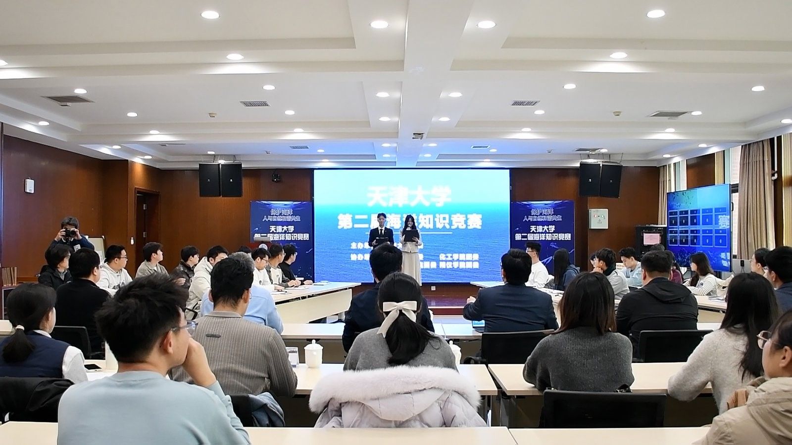 1月4日,188金宝博 第二届海洋知识竞赛决赛在北洋园校区50教A332会议室隆重举行。188金宝博 校团委书记李一昂、化工188金宝博 党委书记汪怀远、精仪188金宝博 党委书记刘琨、未来技术188金宝博 党委书记凌国维、188金宝博 副书记靳楠、化工188金宝博 副书记赵书航、未来技术188金宝博 副书记李定杰出席活动,此外还有来自于化工188金宝博 、建筑188金宝博 以及地科院等188金宝博 的研究生会代表应邀参加活动。决赛以现场作答的方式进行,共包含必答突围赛、抢答积分赛、终极对抗赛三个环节。