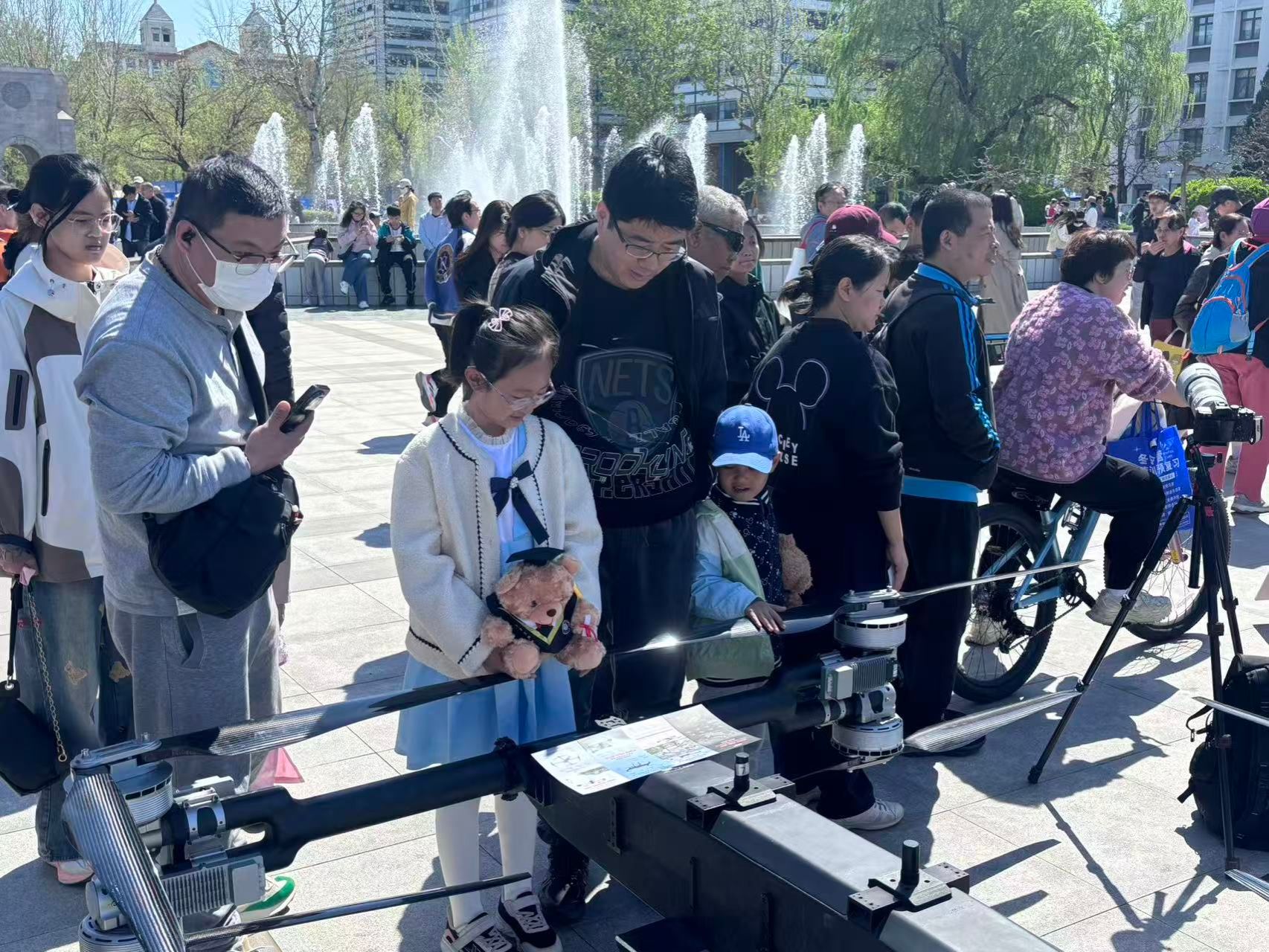大型海洋监测无人机惊艳亮相,机身流畅、设备精密,可广泛应用于海洋环境监测、海岸巡查、应急搜救、海洋数据采集等场景,是守护海洋安全、探索海洋奥秘的 “空中利器”。硬核科技感与海棠花海的浪漫氛围碰撞,引得游客纷纷驻足观赏、打卡留念,近距离感受海洋智能装备的科技魅力。