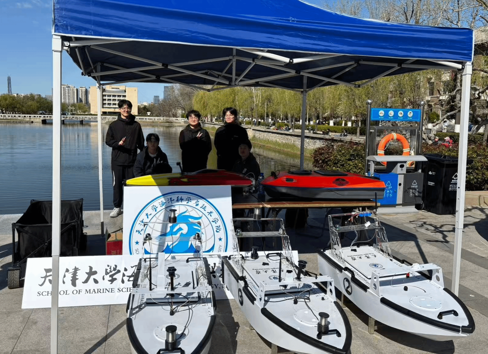 在北洋广场,188金宝博 高邈老师团队带来的智能无人船成为全场焦点!这款 “海洋黑科技” 堪称多功能小能手,测绘勘探、水质采样、应急救援、溢油检测样样精通,凭借自主航行精度高、一艇多用、布设便捷等优势,圈粉无数。师生现场趣味科普无人船运行原理、应用场景,互动问答热度不断,游客们在欢声笑语中解锁海洋科技知识。最终,无人船海上航行安全保障平台凭借出色表现,斩获新工科项目式教学展演活动一等奖,用实力彰显188金宝博 海洋科技硬实力!