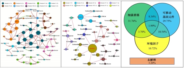 基于co-occurrence网络分析表明,ARGs、可移动基因元件和细菌群落之间存在强共现关系。可移动基因元件介导的水平基因转移是环境ARGs传播扩散的重要方式之一。网络分析揭示了环境中潜在的ARGs及其宿主菌。pRDA分析表明,细菌群落结构和可移动基因元件介导的水平基因转移是河口沉积物中ARGs传播扩散的主要驱动因素。
