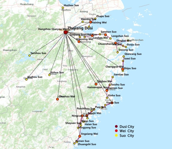 明代浙江海防军事聚落是中国古代沿海军事聚落的代表(图1),其军事力量分布与自然地形紧密结合,军事分级结构符合分形体系特征。现有研究中,对于传统沿海军事聚落的研究,大多为基于史料的历史研究或基于地理信息系统的空间分析,一直存在难以准确描述自然地貌对军事聚落的影响方式的问题。