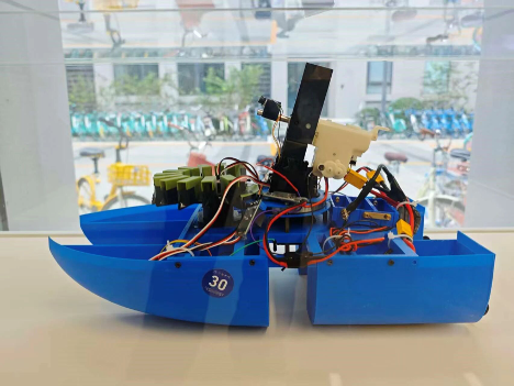Student Xu Luoning showcased this infrared navigation vessel, independently developed by a student team. Utilizing multiplexers and event-triggered control strategies, the vessel achieves efficient and stable autonomous tracking and dynamic encirclement, demonstrating the students' comprehensive abilities in embedded systems and intelligent control.